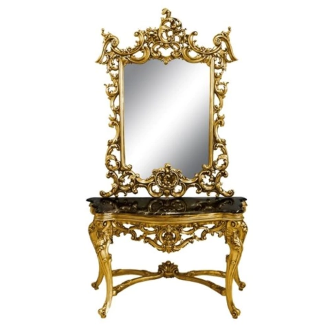 Aparador Madeira Fol. Ouro C Espelho E Tampo Marmore