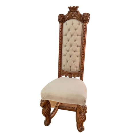 Cadeira Madeira de Lei Entalhada a Mão Escultura Leão Encosto Alto com Capitonê