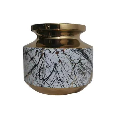 Vaso Baixo Redondo Design Abstrato Branco Dourado Formosa